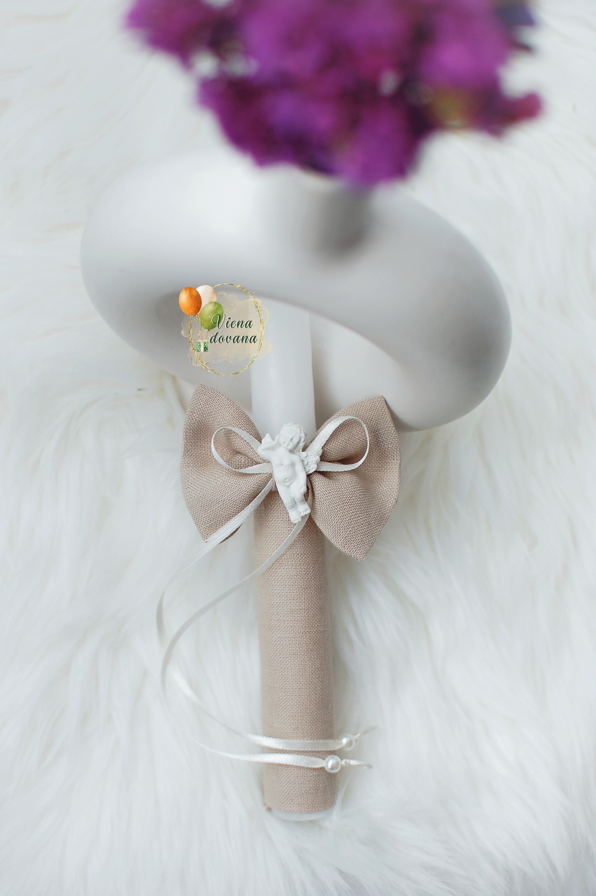 Dekoruota žvakė krikštynoms ir/ar pirmai komunijai.